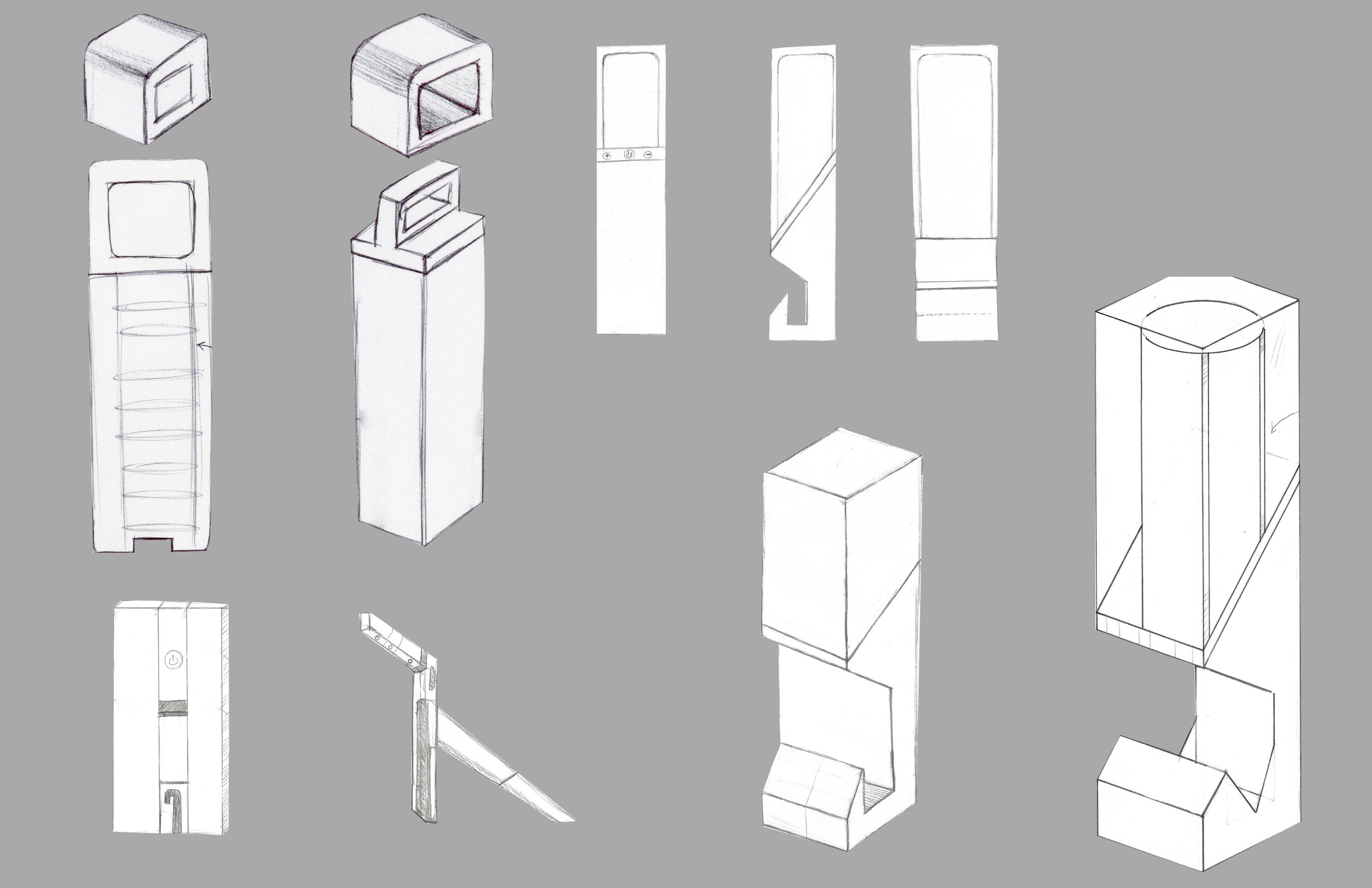 Create any hand held that had a use and targeted a specific consumer and their choice of design. Create multiple rounds or prototypes using my material of choice for low-fidelity designs. The final model needed to be made from a different material than the one used for low-fidelity models, and if possible, to make the handheld work in some aspect.